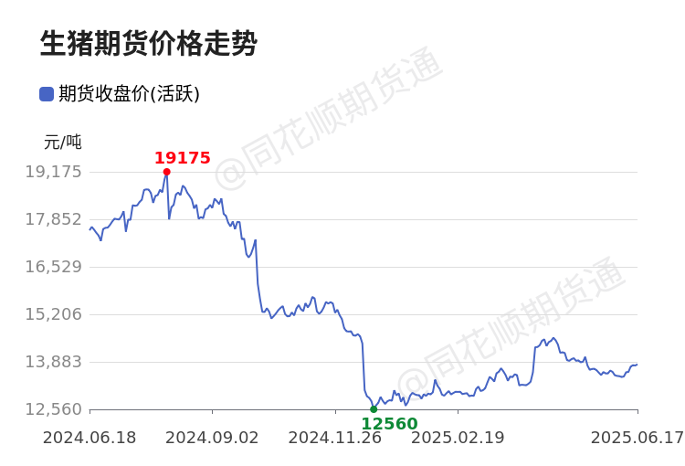 生猪主连6月17日已涨至13815.00元/吨,当日涨幅0.25%,周涨幅1.62%,月涨幅1.13%。